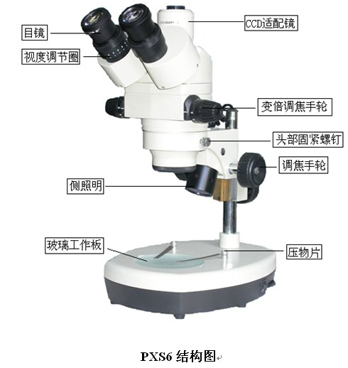 5.视场直径大。目前体视镜的光学结构是:由一个共用的初级物镜,对物体成象后的两光束被两组中间物镜-变焦镜分开,并成一体视角再经各自的目镜成象,它的倍率变化是由改变中间镜组之间的距离而获得的,因此又称为"连续变倍体视显微镜"(Zoom-stereo microscope)。随着应用的要求,目前体视镜可选配丰富的选购附件,如荧光,照相,摄象,冷光源等等。